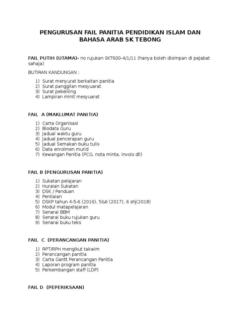 Pengurusan Fail Panitia Pendidikan Islam Dan Bahasa Arab Pdf