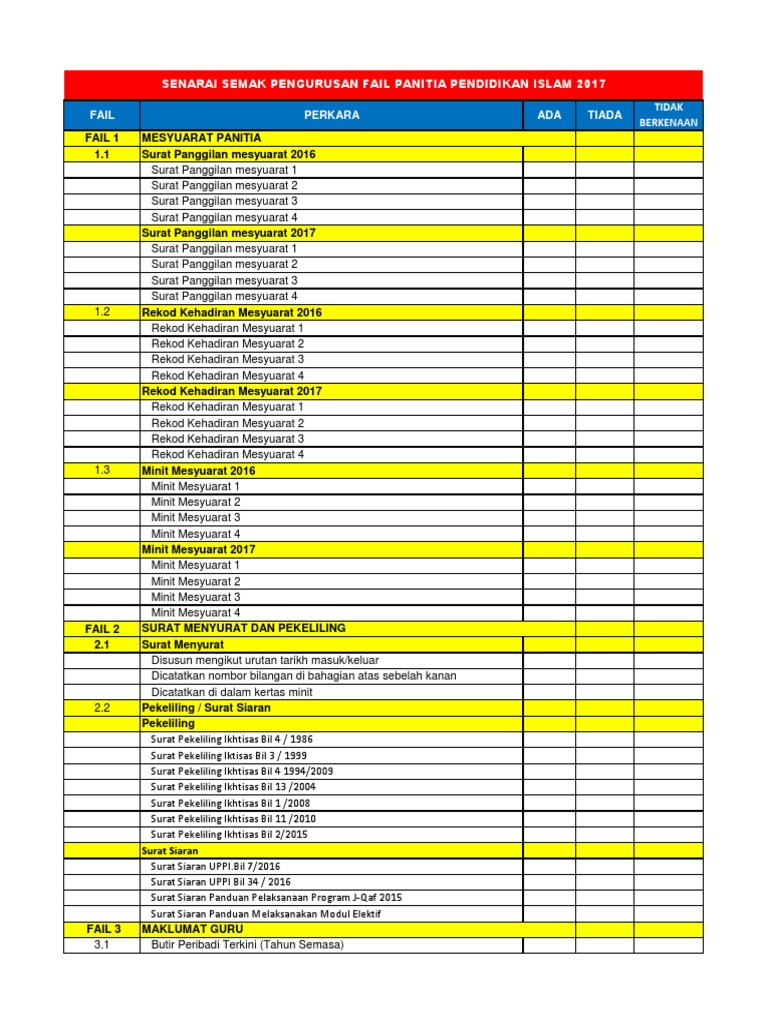 Senarai Semak Kandungan Fail Panitia Pendidikan Islam 2017 Pdf